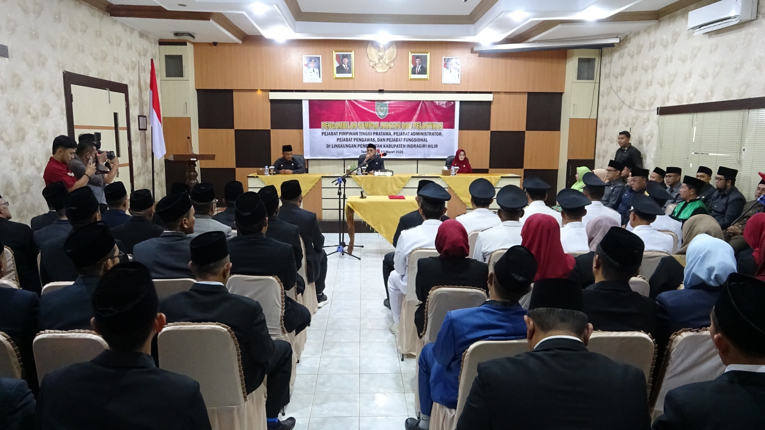 AYORIAU.CO - Bupati Indragiri Hilir (Inhil), Herman, melantik dan mengambil sumpah jabatan puluhan pejabat pimpinan tinggi pratama, pejabat administrator, pejabat pengawas, serta pejabat fungsional di lingkungan Pemerintah Kabupaten Indragiri Hilir, Jumat (13/3/2026), di Aula Kantor Bapperida Inhil.