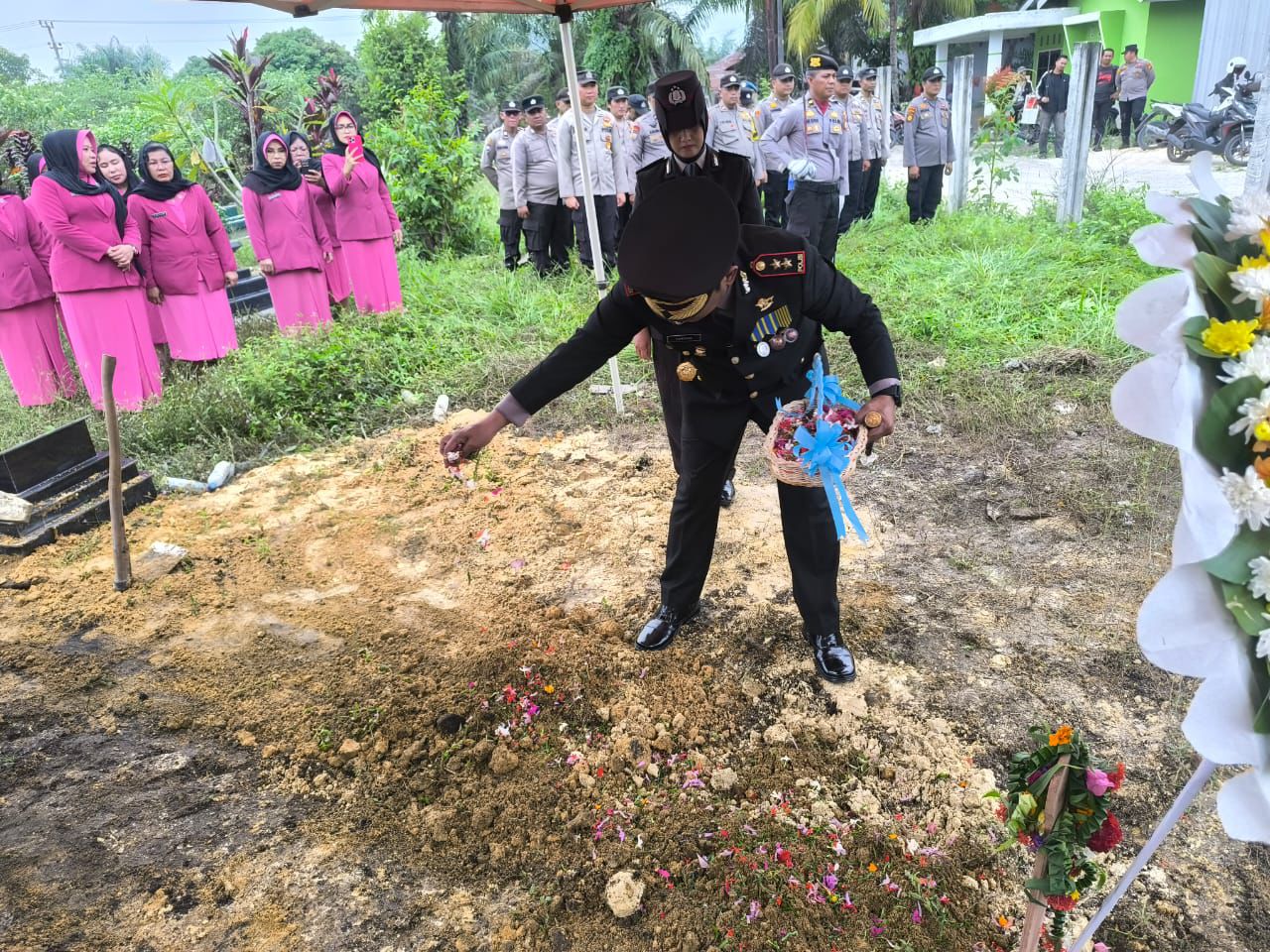 Kegiatan ini turut dihadiri oleh Waka Polres, para Pejabat Utama Polres Inhil, Kabag SDM Polres Kampar, personel Polres Kampar, Bhayangkari Polres Inhil, keluarga besar Almarhum, serta masyarakat sekitar yang memberikan penghormatan terakhir.
