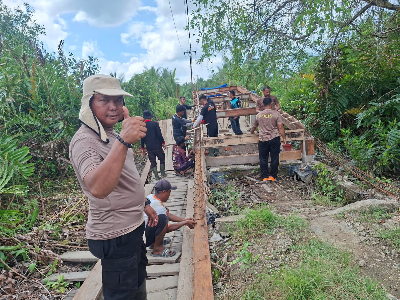 Kolaborasi Polri dan Warga, Jembatan Merah Putih Presisi di Batang Tuaka Sudah 50 Persen