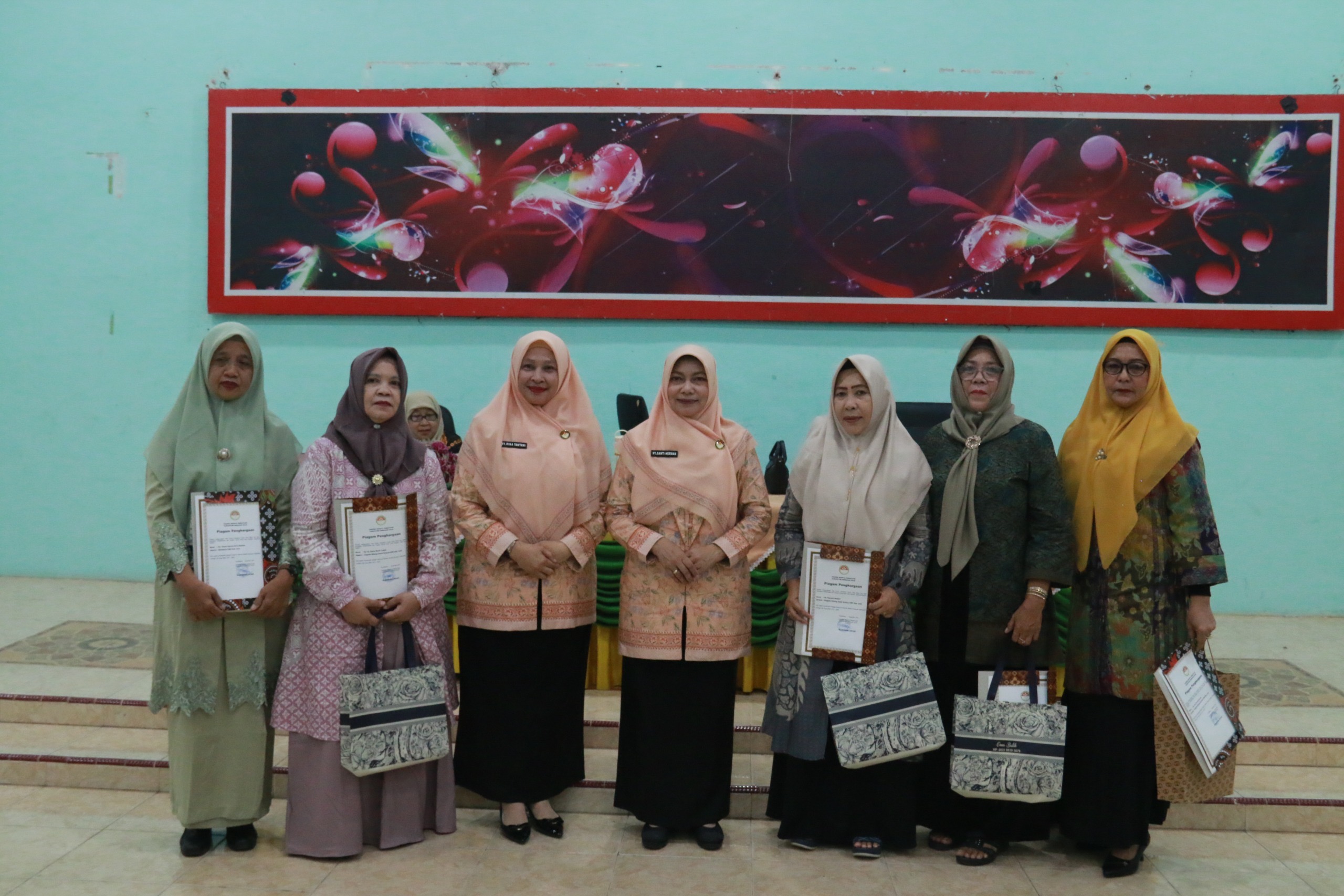 Kegiatan yang berlangsung di Gedung DWP Kabupaten Inhil pada Jumat 6 Februari 2026 tersebut juga diisi dengan penyerahan piagam penghargaan kepada pengurus DWP Kabupaten Inhil masa bakti 2019–2024 yang telah memasuki masa purna bakti atau pensiun, sebagai bentuk penghargaan atas dedikasi selama menjalankan tugas organisasi.