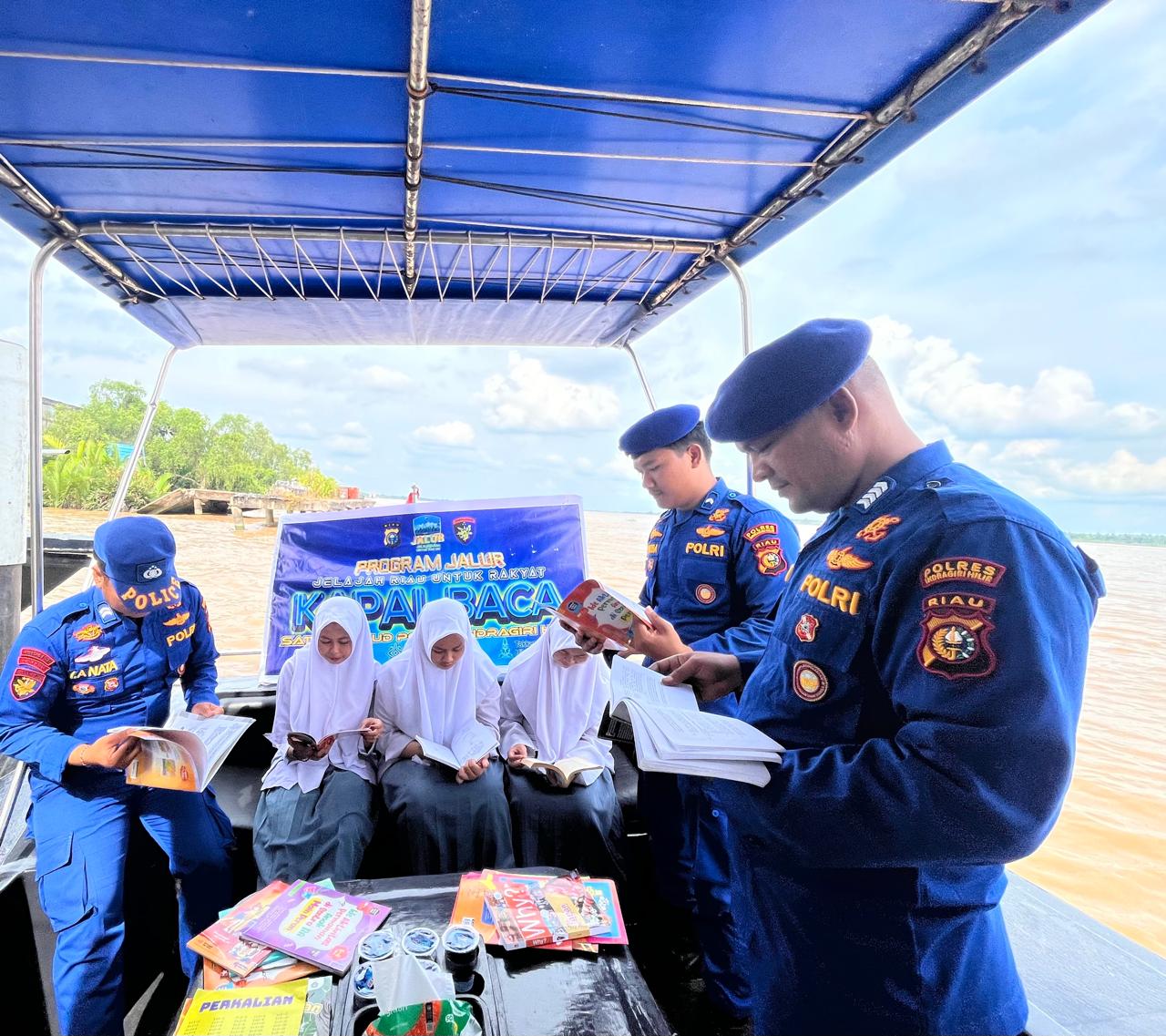 AYORIAU.CO, INHIL - Satuan Polisi Air dan Udara (Satpolairud) Polres Indragiri Hilir kembali melaksanakan Program Kegiatan Jalur (Jelajah Riau untuk Rakyat) melalui kegiatan Pustaka Terapung yang ditujukan bagi anak-anak pesisir di Kecamatan Tembilahan, Kabupaten Indragiri Hilir.