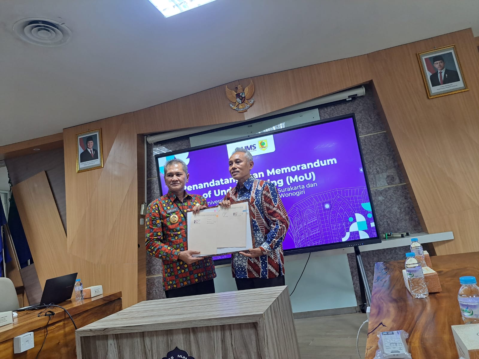 AYORIAU.CO - Universitas Muhammadiyah Surakarta (UMS) dan Pemerintah Kabupaten Wonogiri resmi menandatangani Nota Kesepahaman (MoU) tentang kerja sama dalam bidang pendidikan, penelitian, dan pengabdian kepada masyarakat. Kegiatan penandatanganan berlangsung di Ruang Sidang Badan Pembina Harian (BPH) Lantai 6, Gedung Induk Siti Walidah Universitas Muhammadiyah Surakarta.